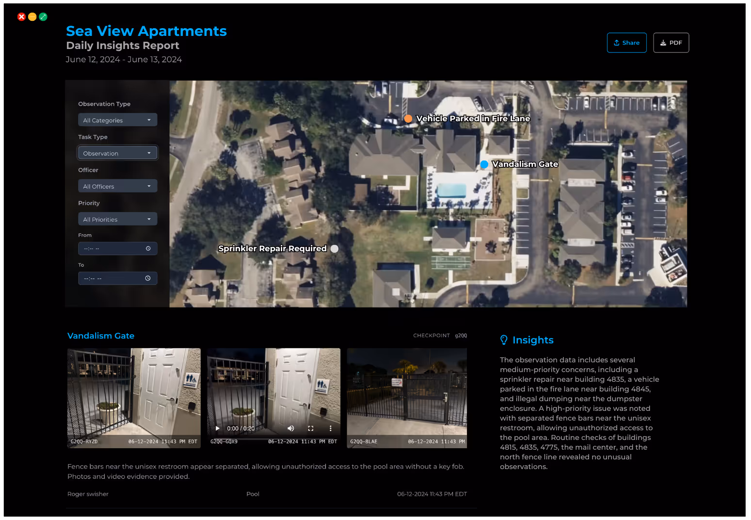 Organized, verified patrol routes and checkpoints provide complete transparency across properties.